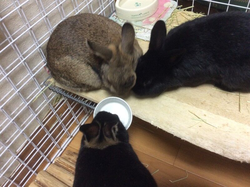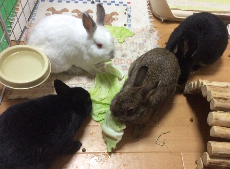 私とうさぎさんたち。