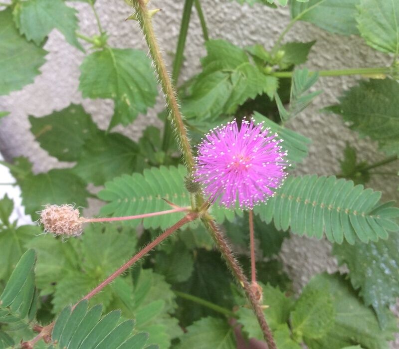 おととい、オジギソウのお花が咲きました。