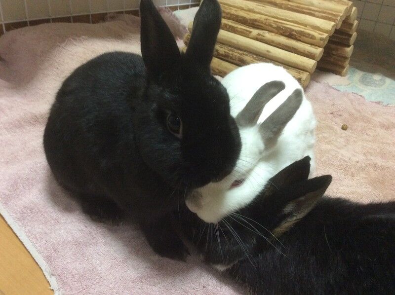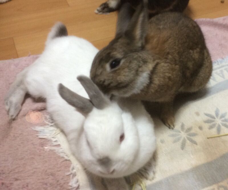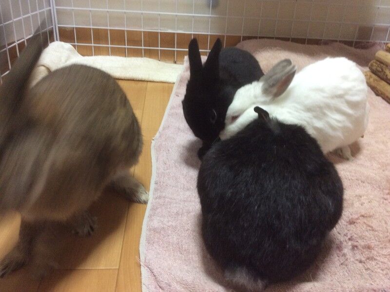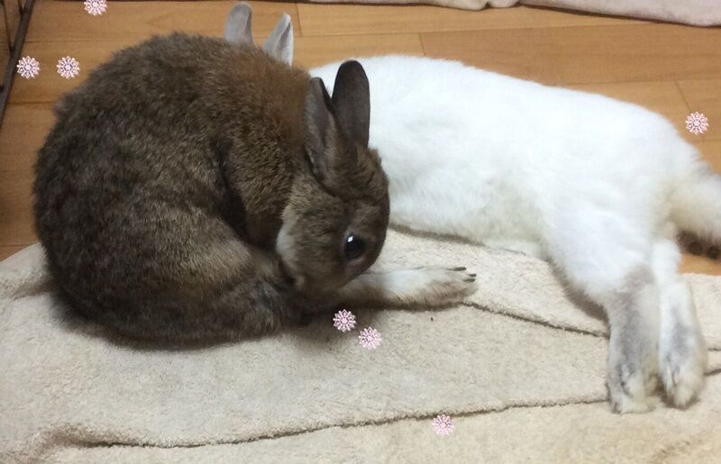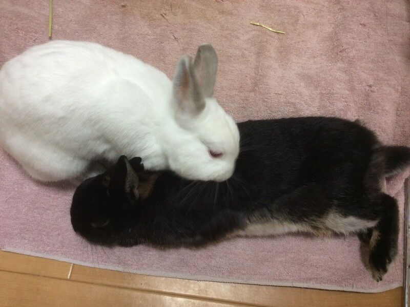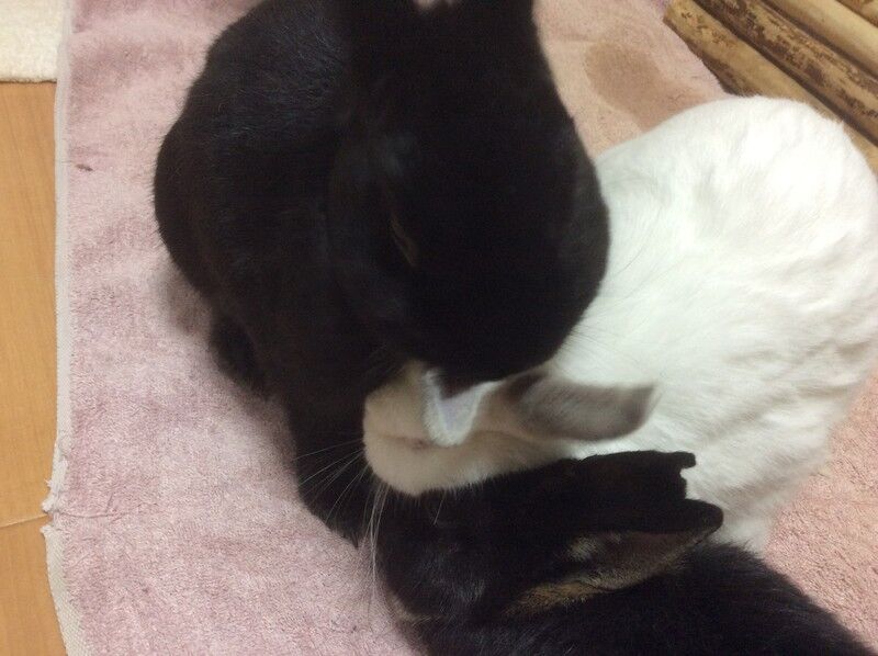 こゆちゃんがマリちゃんをペロペロして、毛づくろいのお世話中