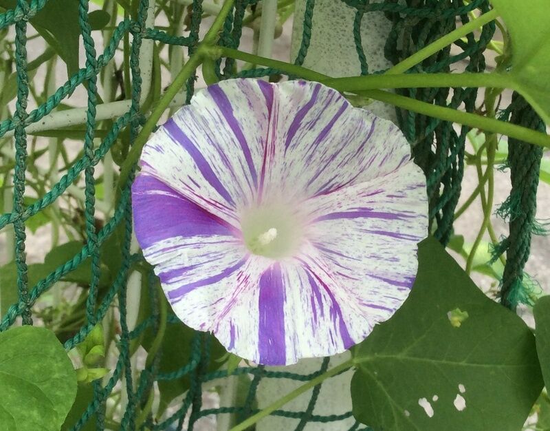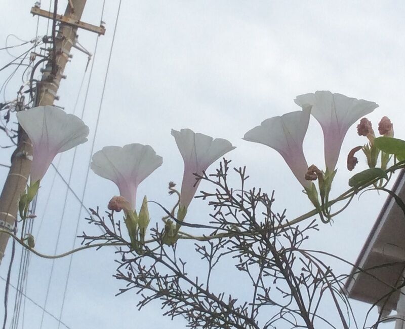 アサガオさん、手の届かないところまで伸びて、