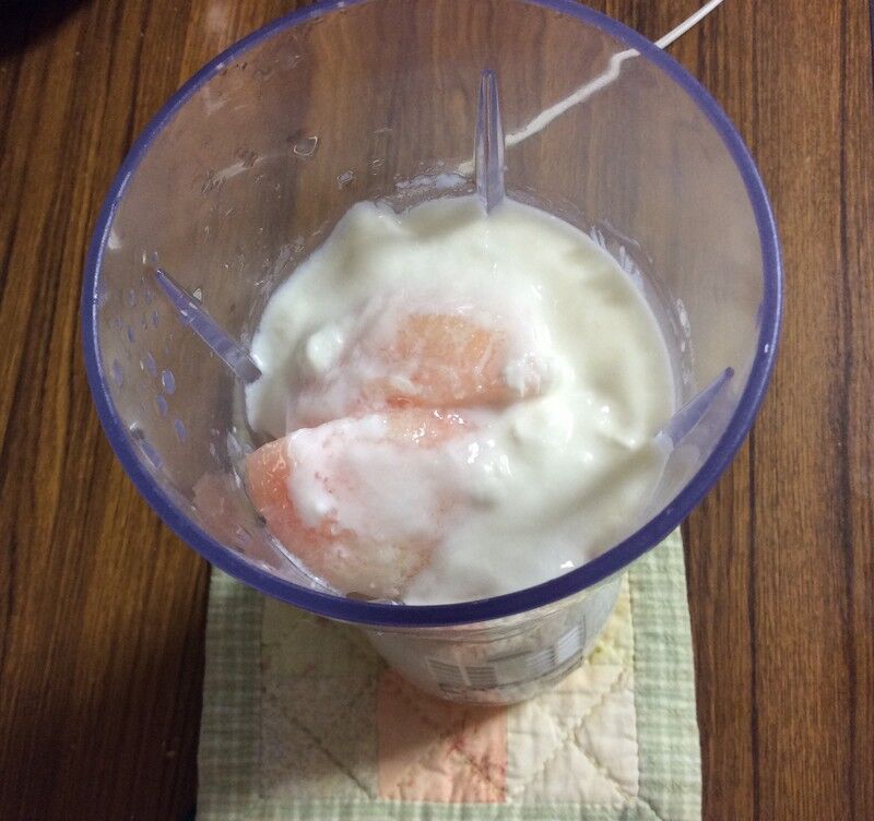 頂き物の山梨県産の桃と、自家製ヨーグルト、牛乳、レモン汁を