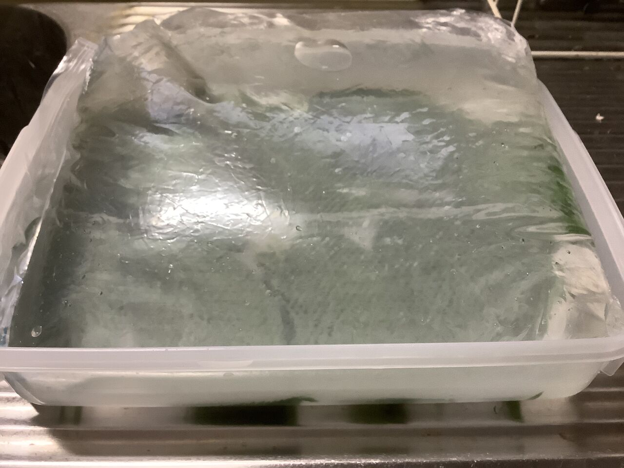 その後は塩水少々と共に包んで冷蔵(冷凍)庫で保存です。