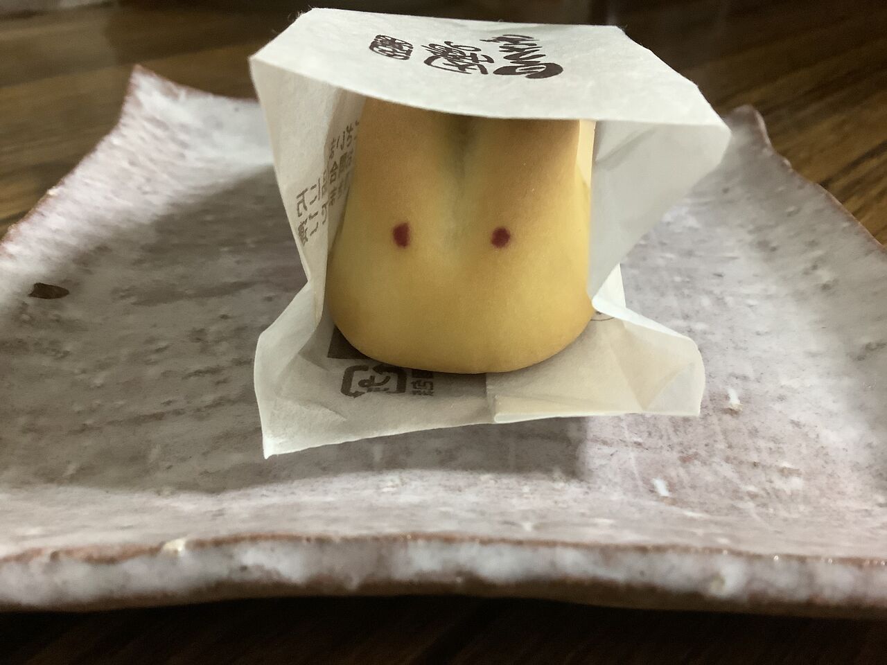 頂き物です。顔を見たら食べられないので、お尻から食べました。