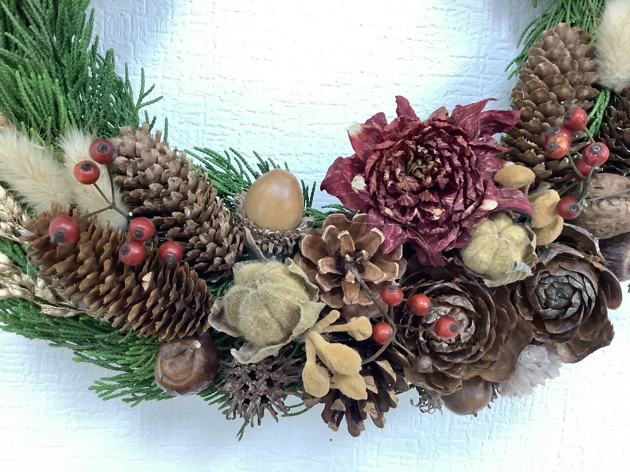 50㎝リース。てんこ盛りでせっかくの葉っぱが見えない・・・