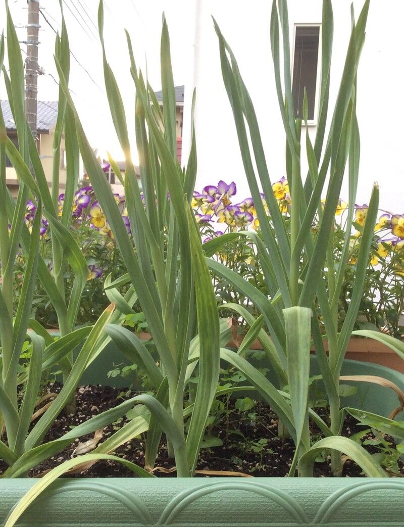 ちなみに、ニンニク(球)の収穫は葉が枯れ始めてからです。