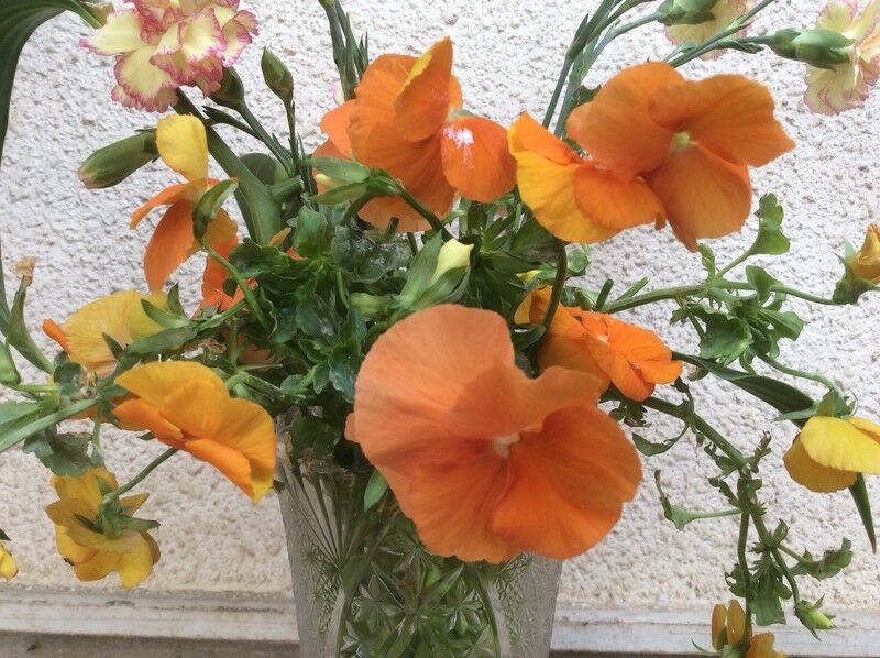 徒長したパンジーを切り戻して、花瓶に生けました。