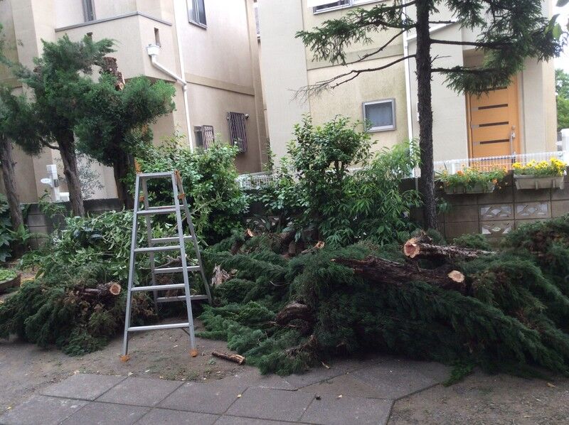 ばっさばさに切られた木の枝や葉っぱ、なんだかもったいなくてそわそわしちゃいますね(о´∀`о);