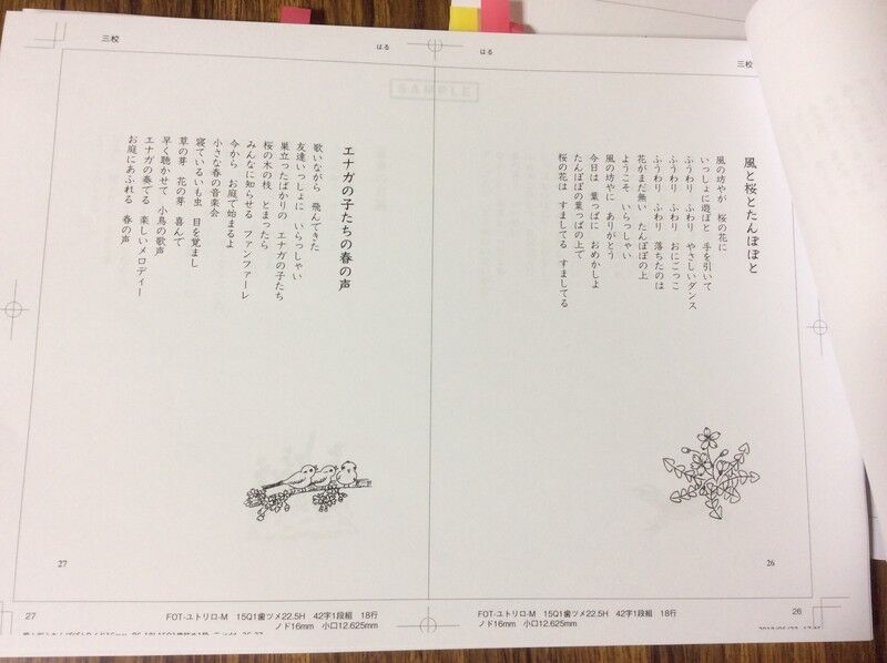 詩の本の校正紙、中をめくると、こんな感じです。