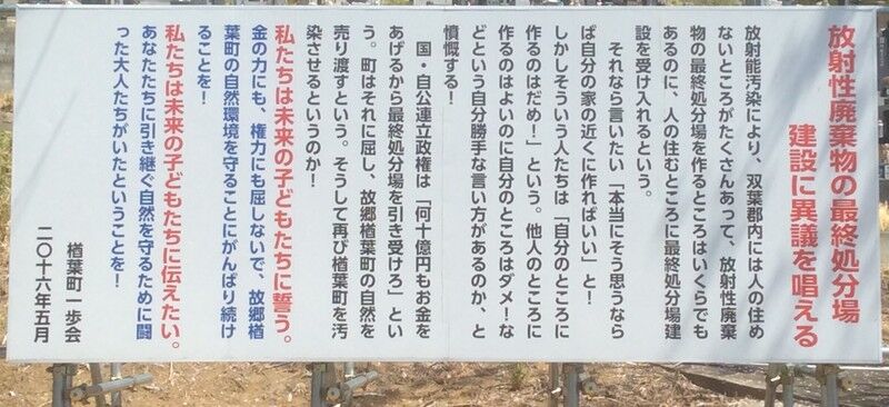 楢葉町に最終処分場を持ってくることを反対した町民の怒りと誓いです。