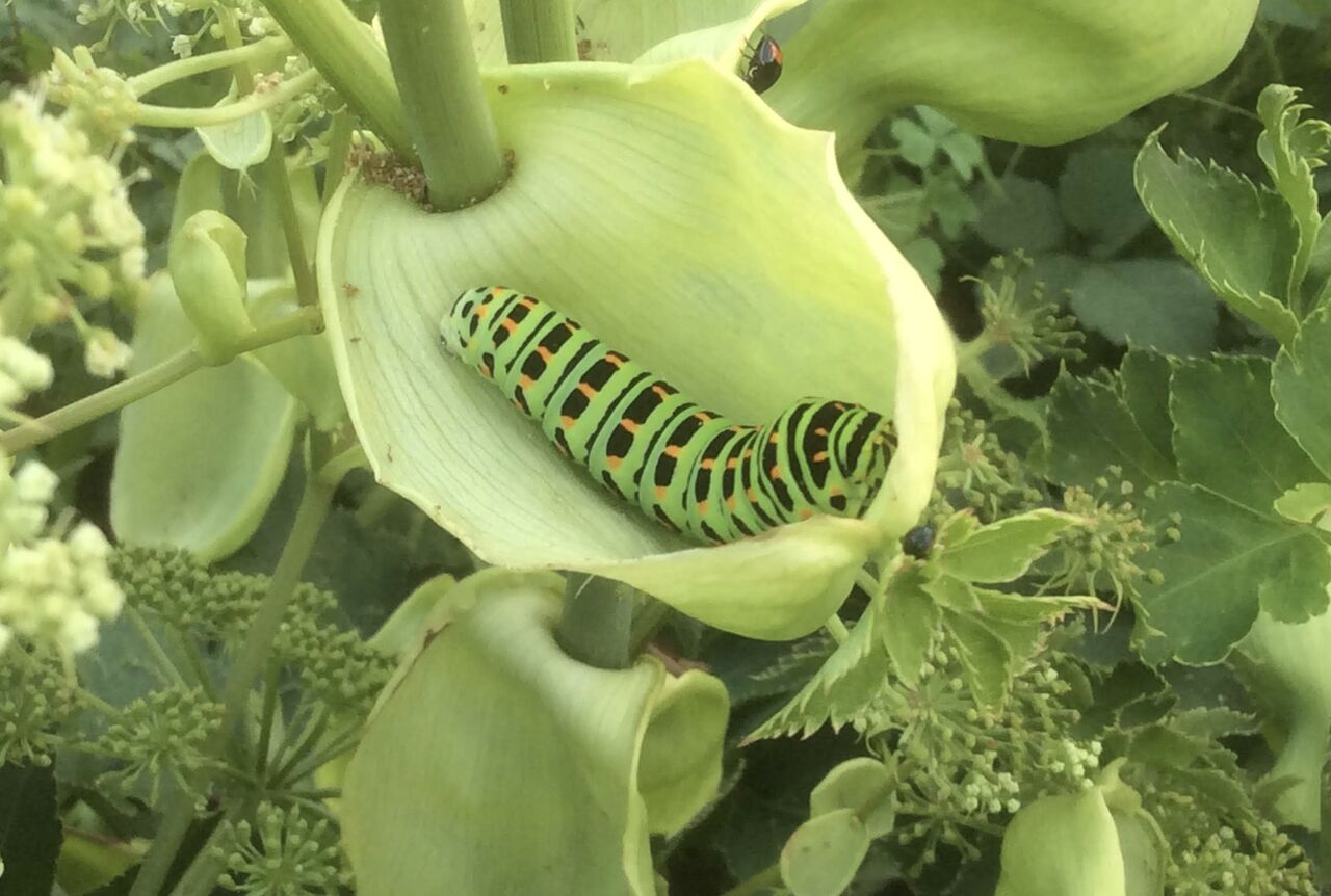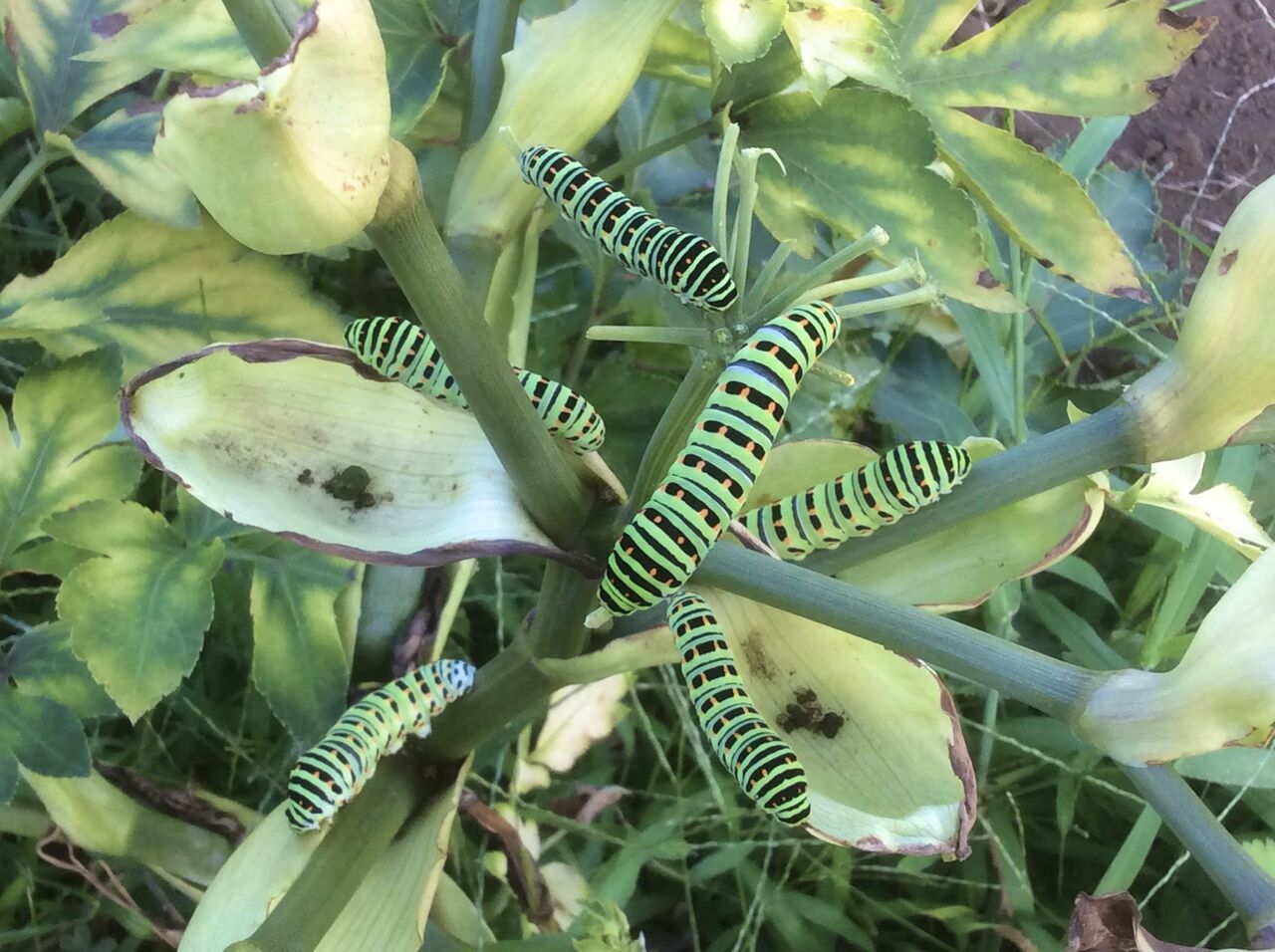 アゲハチョウがお花の上を6匹も優雅に飛んでいて、