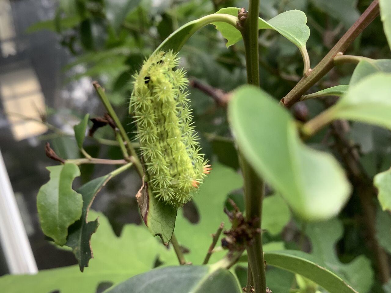窓を見上げたら、ものすごく大きなスズメバチがいて